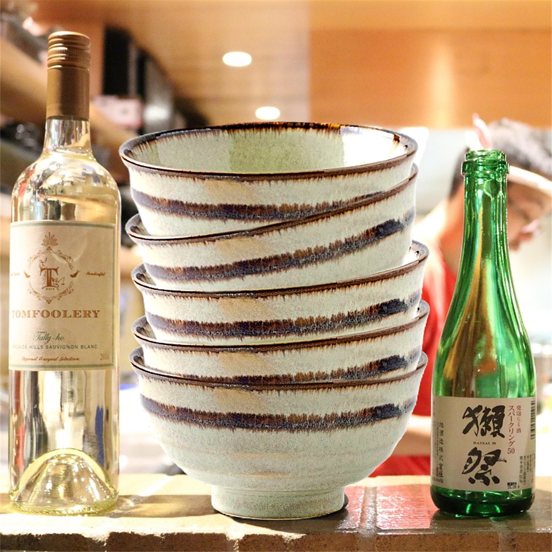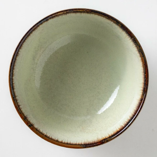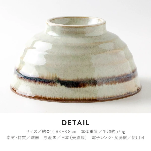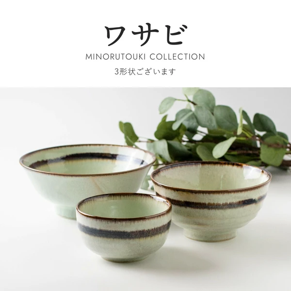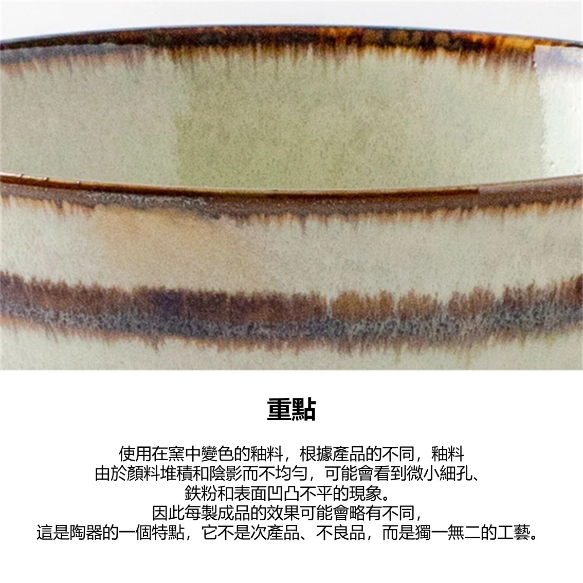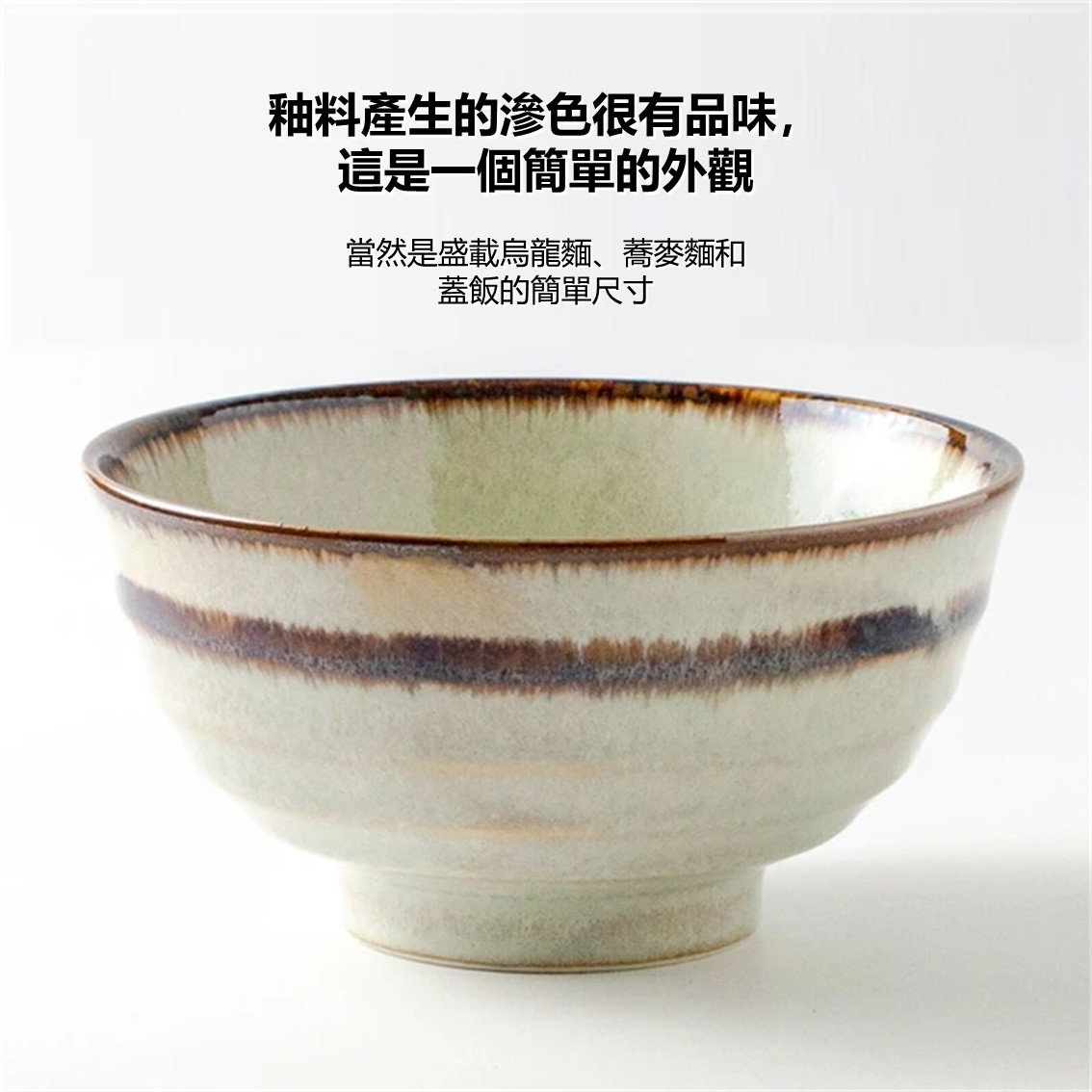 1️⃣ 飯碗以芥末綠色為主調。是日本職人透過精心工藝,使用在窯中變色的釉料,由於釉料堆積和陰影而不均勻,往往可以看到每個碗的圖案有輕微的不一樣和表面微微的凹凸不平,所以每件製成品可能會略有不同,也就是每個碗都是獨一無二的,讓人愛不釋手。