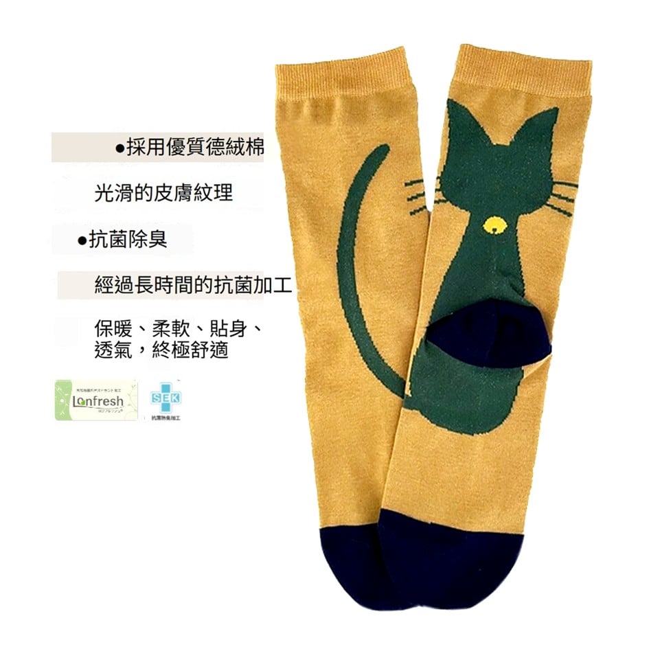 款式:長尾貓貓背影抗菌防臭襪